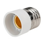 Цокольный переходник REXANT 11-8831 Е14 – E27 предназначен для подключения ламп с цоколем E27 к патронам Е14. Распространен в быту и строительстве, когда нужно заменить один тип цоколя лампы на другой.