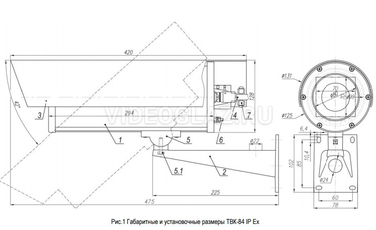 Видеокамера выполнена в гермобоксе ТГБ-4Р с маркировкой взрывозащиты 0ЕхdsIIВТ6Х cо степенью защиты обеспечиваемой оболочкой – IP67 и по уровню защиты относится к особо взрывобезопасному электрооборудованию. Климатическое исполнение изделия соответствует УХЛ1.5 ГОСТ 15150-69. Изделие выпускается по техническим условиям ИМПФ.463132.003 ТУ.