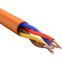 Огнестойкий симметричный кабель парной скрутки REXANT Кабель КПСнг(А)-FRLS 2x2x0,50мм² 200м (01-4909), не распространяющий горение при групповой прокладке, с пониженным дымо- и газовыделением. Состоит из однопроволочного медного проводника, изоляции из огнестойкой керамизирующейся кремнийорганической резины, дренажного медного проводника и оболочки из ПВХ пластиката с пониженным дымо- и газовыделением. Сохраняет работоспособность в условиях пожара в течение 180 минут. Номинальное напряжение тока до 300 В, частотой 50 Гц. Рабочая температура: –40...+70 °С. Температура прокладки: –10…+50 °С. Цвет оболочки кабеля — оранжевый.