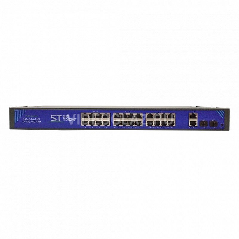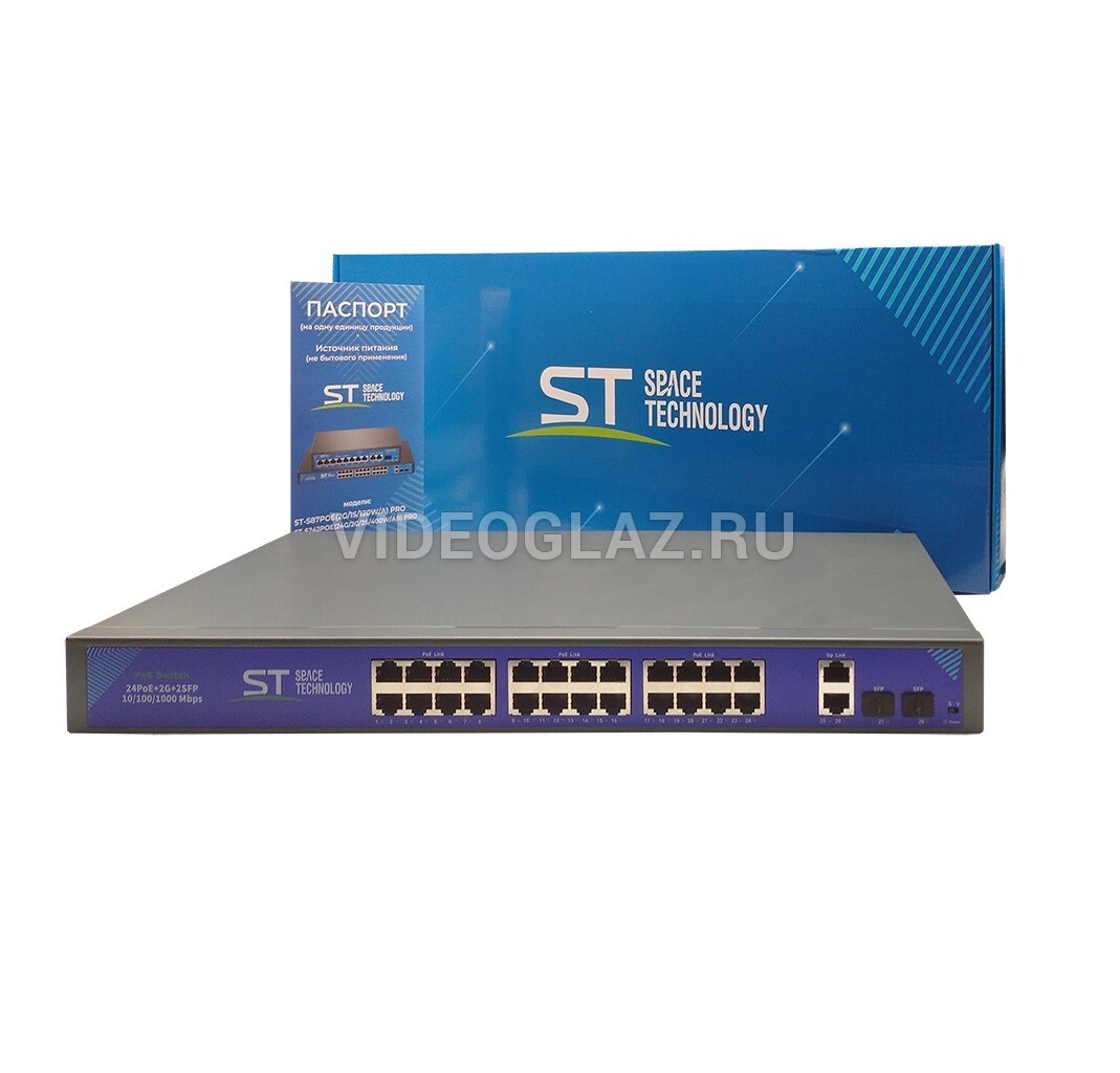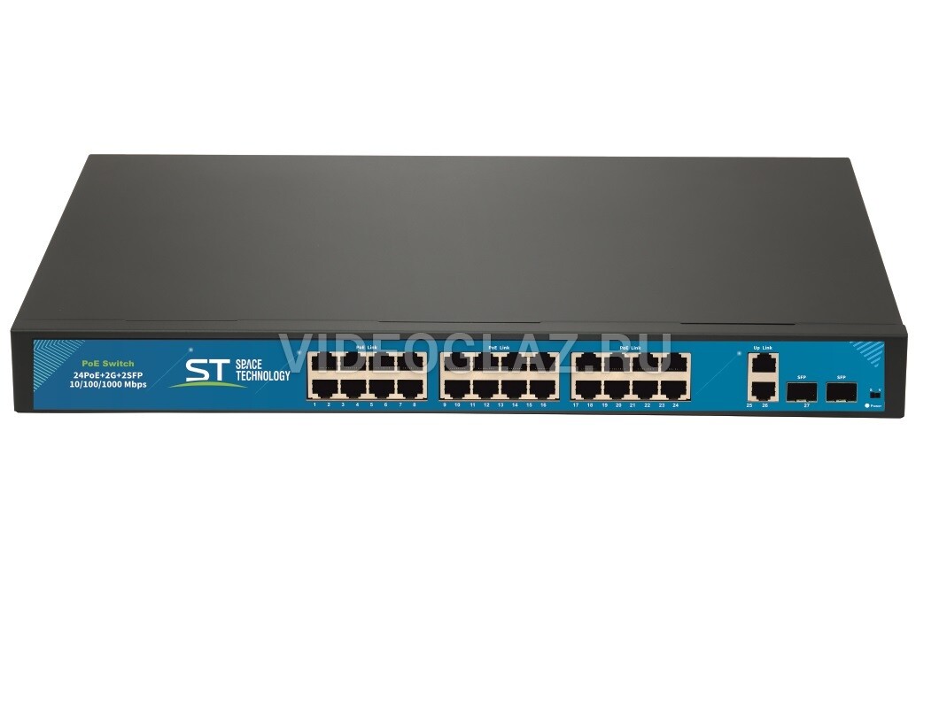 Источник питания ST-S242POE (24G/2G/2S/400W/AB)PRO, POE вариант A/B. Switch POE 24-х портовый для обеспечения проводных сетей напряжением 48В, защита от КЗ, защита от КЗ, AI PoE, AI VLAN.
