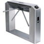 Турникет «SA400-Курс100-ЕМ», также известный как автоматический или полуавтоматический турникет системой контроля доступа (СКУД), предназначен для автоматизации проходных и обеспечения безопасного контроля входа и выхода на объекте. В составе комплекта входят контроллер доступа «Курс-100», работающий с двумя беспроводными считывателями proximity-карт «Портал» вариант 10, интегрируемые в систему «Лавина» для расширенных возможностей управления и учета. Корпус изготовлен из нержавеющей стали с элементами каменной облицовки, что обеспечивает длительный эксплуатационный срок и стойкость к воздействиям окружающей среды. Конструкция турникета включает встроенные световые индикаторы для визуальной обратной связи о статусе прохода, а режим «Антипаника» позволяет быстротемперативное опускание преграждающих планок для эвакуации. Время прохождения одного пользователя не превышает 2 секунд при пропускной способности до 30 человек в минуту (однократный проход) и до 60 человек при свободном режиме. Возможна установка дополнительных устройств, таких как картоприемник для разовых пропусков и дистанционное управление через ручной пульт. Электропитание производится от внешнего источника 12 В (в комплект не входит), потребляемая мощность не превышает 15 Вт. Габариты турникета составляют 720x740x1002 мм, вес — 30 кг. Степень защиты оболочки — IP40, температура эксплуатации от 0 °С до +40 °С, влажность до 90% при +25 °С. Техническая поддержка включает конфигурирование через программное обеспечение «АРМ администратора системы Лавина» или «KeyProg», настройку расписаний, добавление карт и управление режимами.