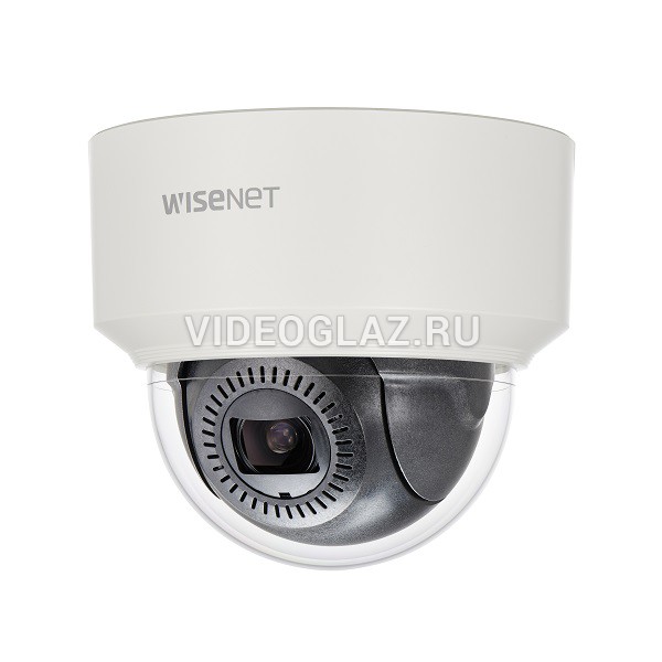 Wisenet XND-6085V - IP-камера купольная с функцией дистанционного управления панорамированием, наклоном, вращением и зумом (PTRZ), углы вращения ±175° / ±73° / ±175°; день-ночь (эл.мех. ИК фильтр). Построена на матрице 1/2" 2,17МП CMOS, с разрешением 2 Мпикс (1945x1097), и скоростью потока 60кадр/сек. (H.265/H.264), 30кадр/сек (MJPEG). Поддержка WiseStream II.