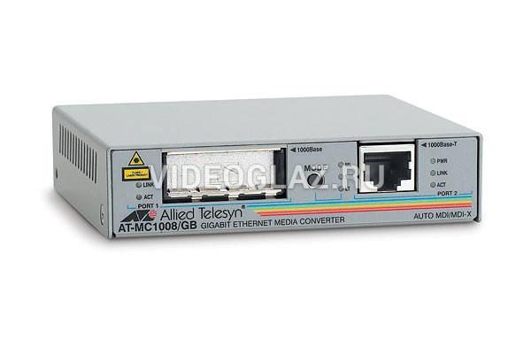 Allied Telesis AT-MC1008/GB предназначен для увеличения протяженности сетей посредством соединения устройств в локальных сетях, разнесенных на значительные расстояния. Такие медиаконвертеры можно подключить к портам 1000 Мбит/с (1 Гбит/с) любого управляемого/ неуправляемого коммутатора или концентратора с помощью стандартных разъемов 1000T RJ-45 и использовать их для преобразования сигнала в оптический стандарт 1000Base интерфейса GBIC, SFP или фиксированного порта 1000SX. Возможность подключения оптических модулей, с одной стороны, обеспечивает гибкие возможности подбора сетевых конфигураций, а с другой – позволяет сократить количество оборудования и комплектующих, которые нужно хранить на складе. Увеличение протяженности соединений Ethernet Каждый из медиаконвертеров серии имеет порт 1000T для подключения витой пары, а также порт для модуля GBIC или SFP. Порт для витой пары оснащается разъемом RJ-45 и поддерживают максимальное рабочее расстояние в 100 метров (328 футов).