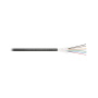 Волоконно-оптический кабель Eurolan 39T-S2-04-15BL серии T12-IND — модульный распределительный кабель чёрного цвета (RAL 9005) для внутриобъектовой и внешней прокладки с четырьмя волокнами типа OS2 9/125, оснащённый свободным буферным покрытием, полиуретановой оболочкой с УФ-стабилизацией, арамидными нитями и стеклопластиковым центральным силовым элементом, имеющий диаметр 6,8 мм, массу 44 кг/км, температурный диапазон эксплуатации от -60 до +85°C и монтажа от -40 до +70°C, минимальный радиус изгиба 15R, класс пожарной безопасности нг(А)-HFLTx, полностью диэлектрический, с повышенной устойчивостью к истиранию и многократной перемотке, масло- и бензостойкий, со средней защитой от грызунов, системной гарантией 25 лет и компонентной гарантией 1 год. Модули и сердечник заполнены гидрофобным гелем. Кабель допускает применение в LAN/WAN-магистралях, центрах обработки данных, при монтаже в трубах и на лотках, а также для организации коротких открытых трасс внешней прокладки. Типовая строительная длина составляет 2000 м, максимальная — 4000 м.