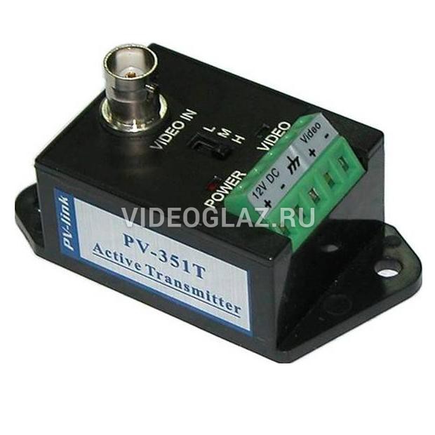PV-Link PV-351T - активный 1-канальный передатчик видеосигнала по витой паре UTP (неэкранированная). Передача видеосигнала PAL / NTSC в реальном времени на большие расстояния. Исключительная защита от интерференций. Настройки дистанции: 3 уровня. Красный индикатор - питание, зеленый - передача видео. Встроенная защита от перенапряжения и грозозащита. Встроенная защита подключаемого оборудования. Удобная установка и подключение, высокий коэффициент использования кабеля, затрат меньше, чем при использовании коаксильного кабеля. Компактный размер.