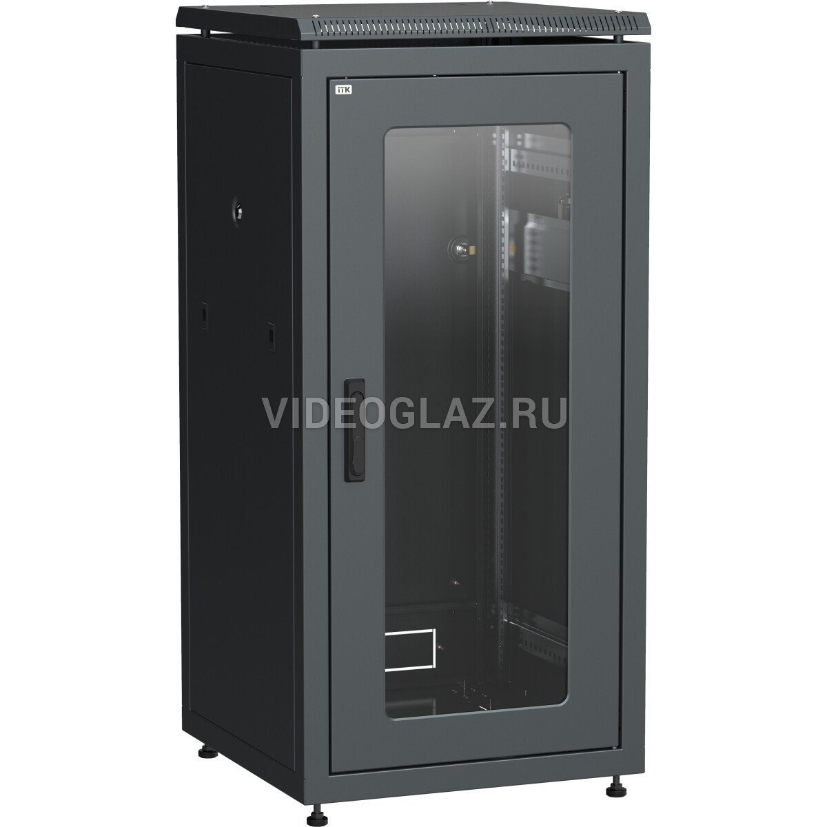 Шкаф сетевой напольный 19" LINEA N 28U 600х800мм, стеклянная передняя дверь, черный.