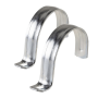Крепежная скоба предназначена для крепления металлорукавов, стальных и полимерных труб к несущей поверхности, возможен крепёж кабельных изделий. Ребро жесткости, проходящее по арочному изгибу скобы, существенно увеличивает допустимые нагрузки. Пазы под крепежный винт продольной конфигурации, предполагают возможность смещения скобы без полного демонтажа. Вид: «двухлапковый» (СМД). Диаметр скобы: 48-50 мм. Диаметр условного прохода металлорукава: 38 мм.