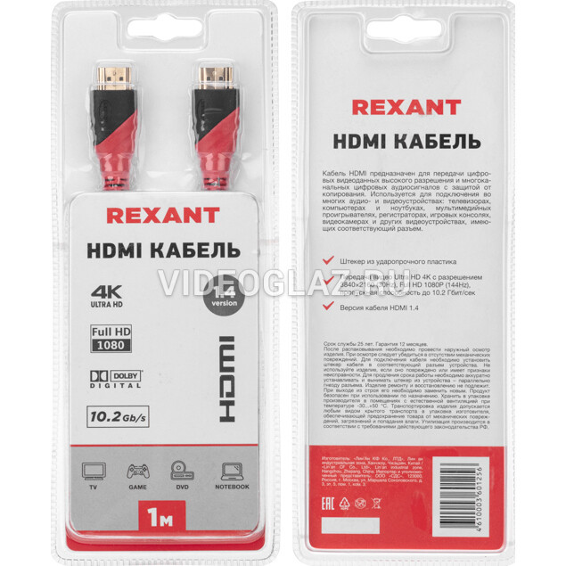 Кабель HDMI версии 1.4 REXANT применяется для подключения компьютеров, ноутбуков, телевизоров, мультимедийных проигрывателей, игровых консолей, видеокамер, автомобильных регистраторов и других видеоустройств. Используется для передачи цифровых видеоданных высокого разрешения и многоканальных цифровых аудиосигналов с защитой от копирования.