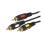 REXANT Шнур 2RCA Plug - 2RCA Plug 1.5М (Gold) (17-0143) предназначен для передачи аналогового видео и аудиосигнала и широко применяется для профессиональных теле и аудиосистем. С обеих сторон шнура располагаются по два штекера разъема RCA (традиционный стандарт для аналоговой видео и аудиотехники).