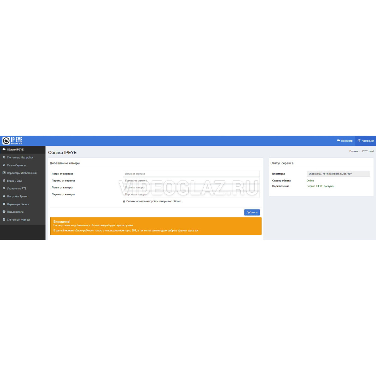 | Уличная видеокамера | Да |