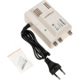 Страна-изготовитель|^Кол-во каналов разветвления| 4 канала, 1 вход - 3 выхода по каждому каналу^Максимальное расстояние при передаче|^Регулируемое усиление|^Полоса пропускания|^Размеры (мм)|^Питание|220В@Усилитель-распредилитель,защита от КЗ, раздельная плавная регулировка уровня и частотной характеристки по каждому из выходов в каждом канале, гальваническая развязка по каждому выходу, защита от перенапряжений и грозовых разрядов по входным и выходным цепям, вариант монтажа - 19"стойка, или настенное крепление, высота 2U.